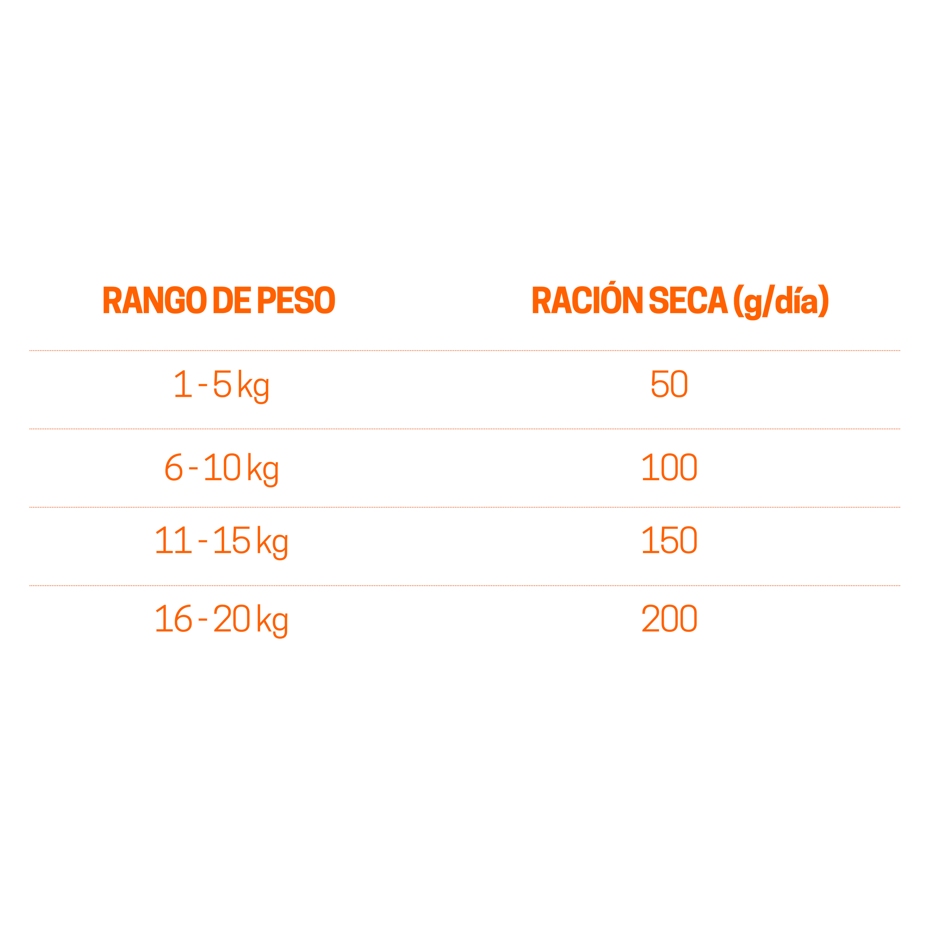 Puedes guiarte de nuestra tabla de porciones. Sin embargo, te recomendamos calcular la porción exacta y personalizada para tu mascota con nuestra calculadora de porciones dando click al botón de abajo.